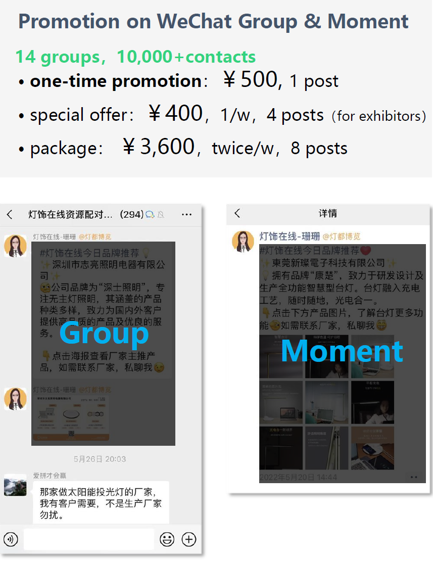 150+ Online Communities on We-chat, gathering 200,000 trade buyers from past Furniture China Fair, well connects the manufacturers and buyers.